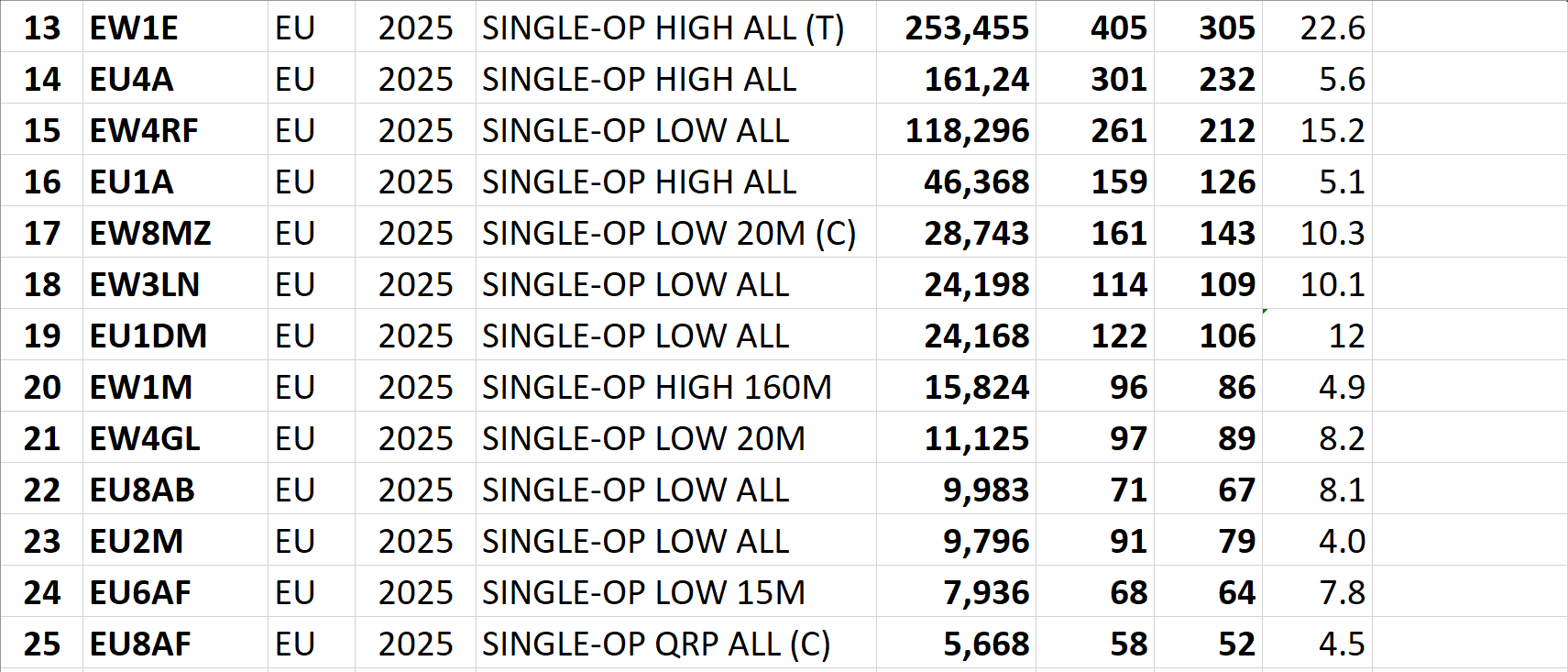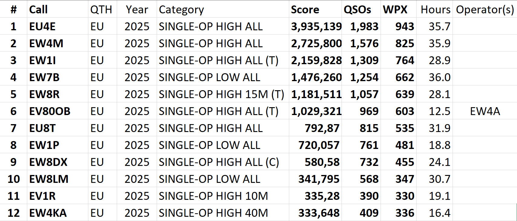 p.s. рейтинг составлял ни один EW1EA, это коллективная работа, а WAE одни из самых трудных соревнования, не все умеют брать QTC, нужна тренировка и сноровка.