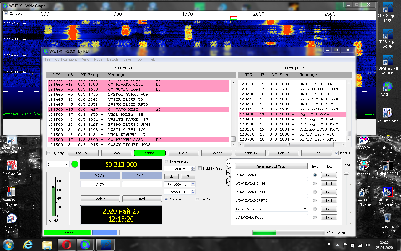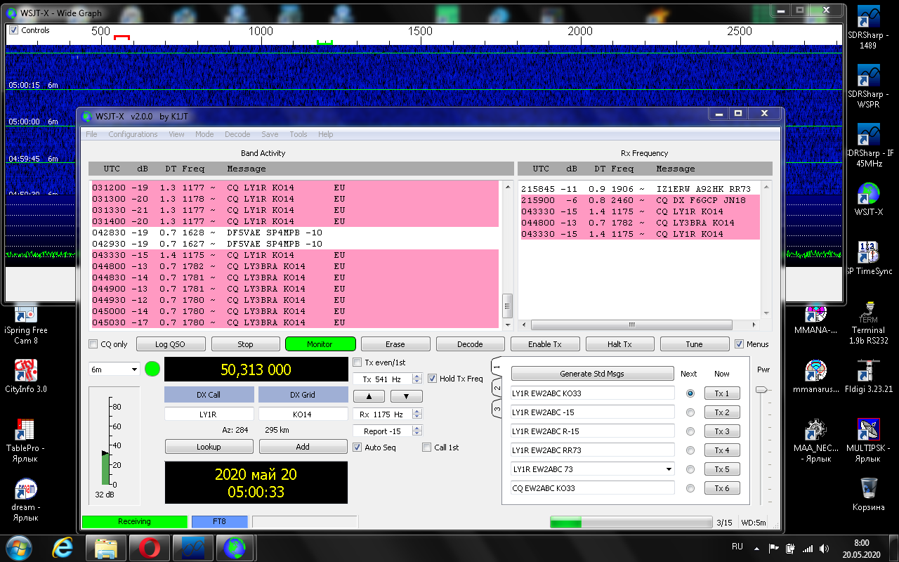 Сегодня с утра принял по тропо LY3BRA 50.313 в FT8 -19 (300km) на свисток SDR и антенну 28MHz.