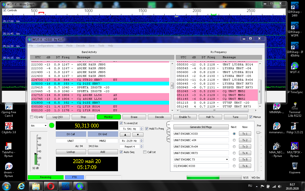 А спорадик гремит и вчера и сегодня, в основном Европа. Принимал на 9 баллов английский репитер в FM 50.800MHz. Кроме активности в телеграфе, SSB и FT8 заметил работу в FM на 50.600MHz.