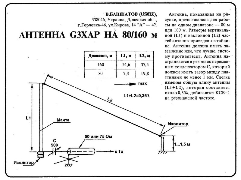 АНТЕННА НА 80 ИЛИ 160 G3XAP