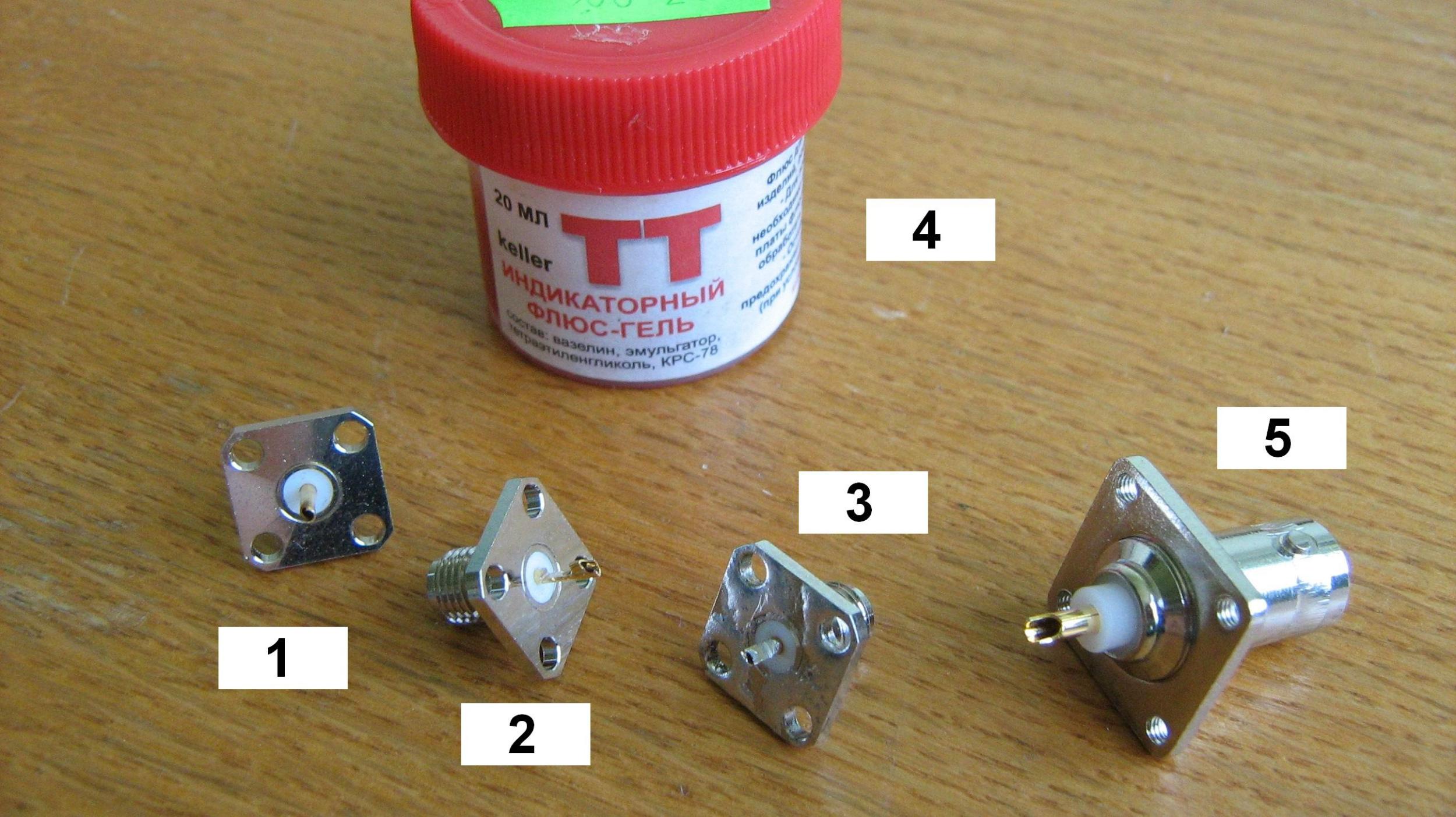 4 – флюс, для лужения никелированной поверхности, продается на Лебяжьем. После лужения разъем полезно отмыть в проточной горячей воде.