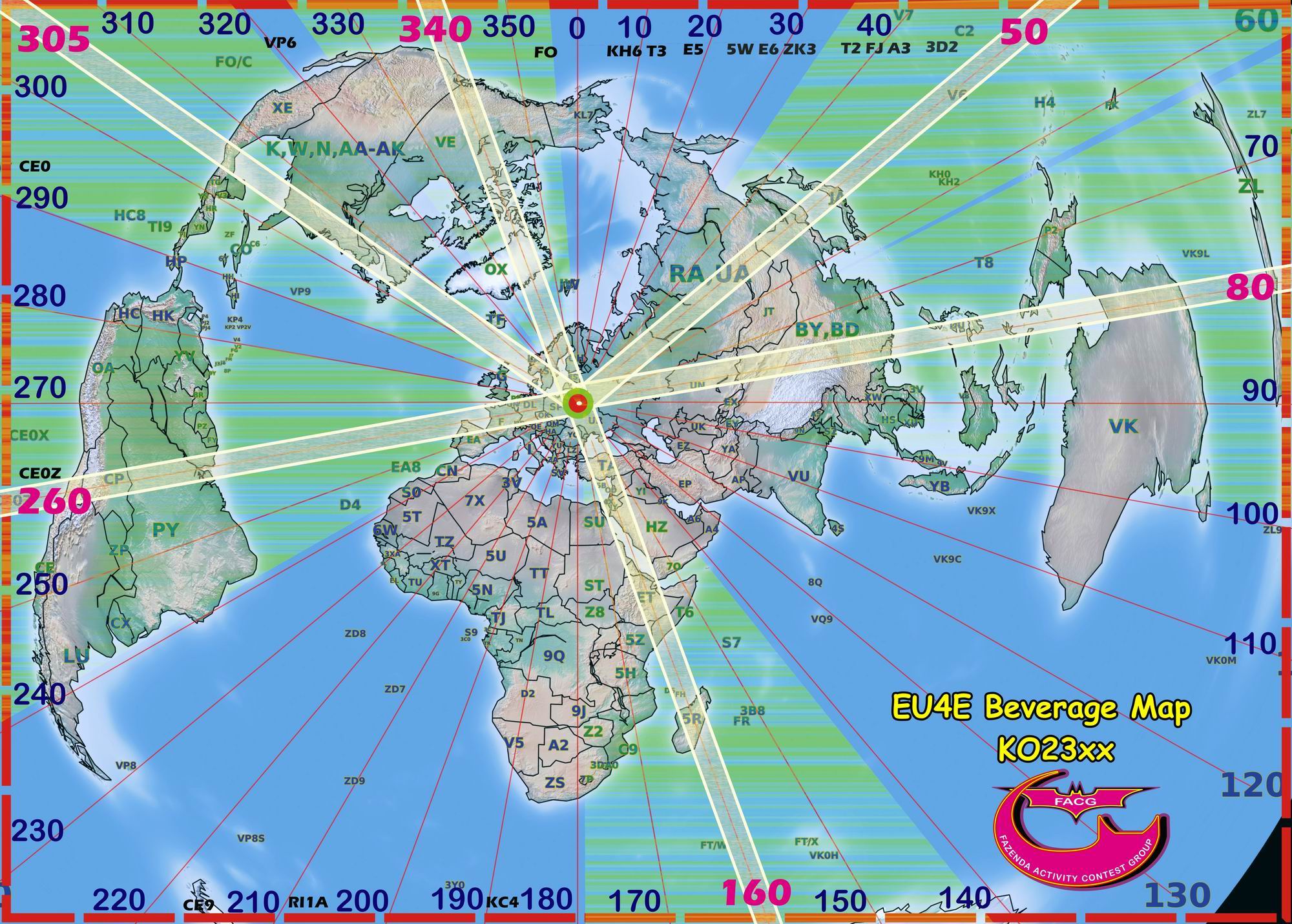 ТОЖЕ ХОТЕЛ СДЕЛАТЬ СЕБЕ ЧТО ТО ПОДОБНОЕ ...EU2AA писал(а):Карта безусловно украсит стенку, но для УКВ нужны поменьше, радиусом 1000км, 2 тыс.км, 4 тыс.км ...EU3EU писал(а):Центр - в квадрате KO33jn, но для любых других точек Беларуси разница будет не больше 1-2 градусов, что на КВ вообще непринципиально. Надеюсь, кому-то пригодится. 73!