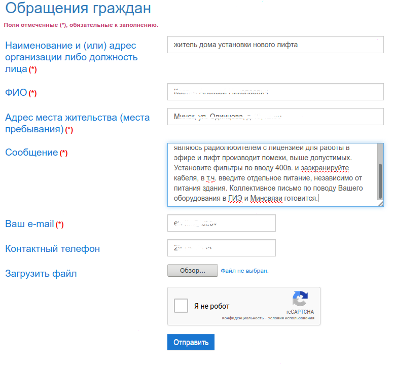 Пробую обращение в могилевлифт, второй шаг, после безрезультатного обращения в ГИЭ