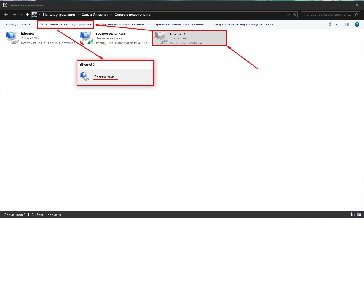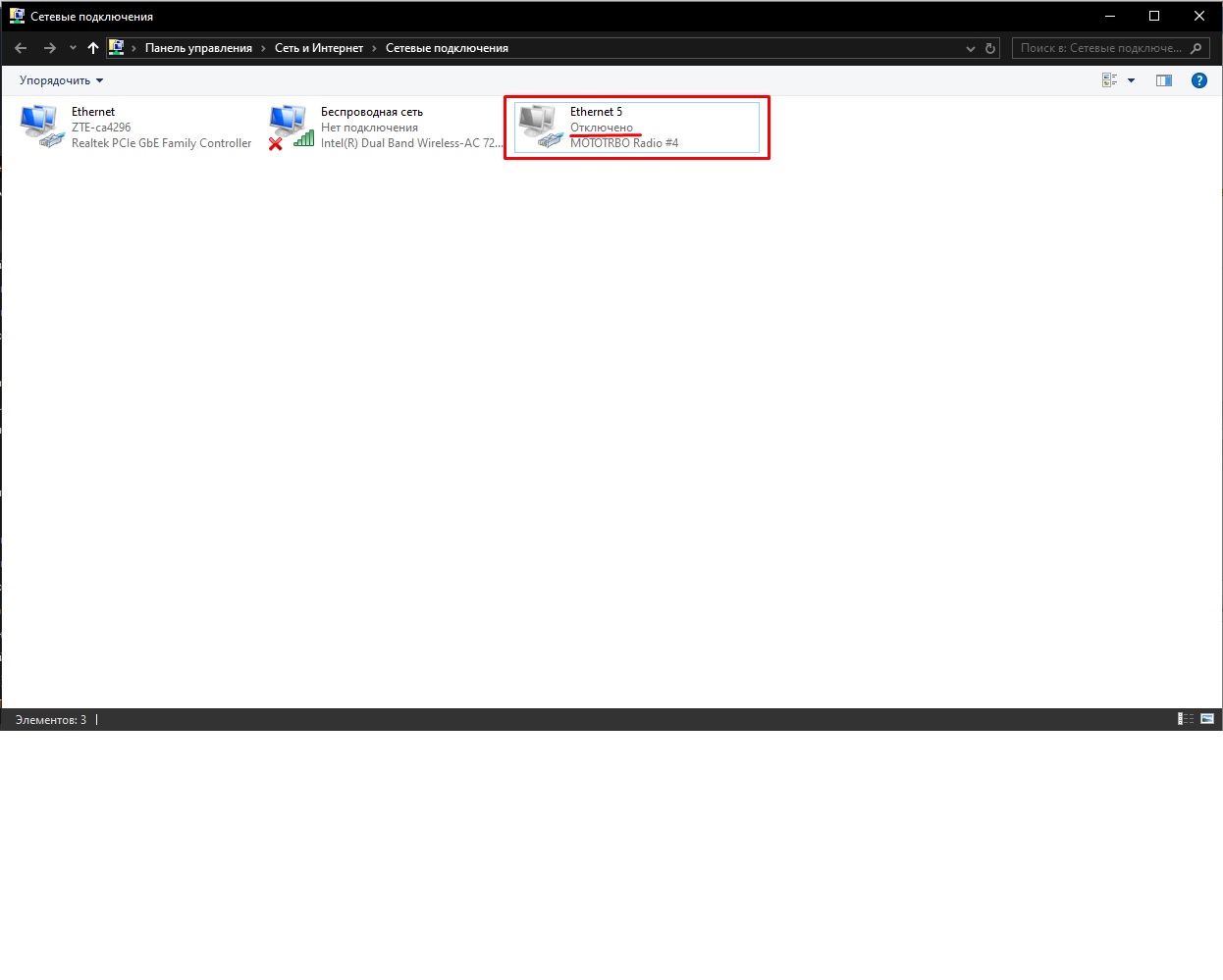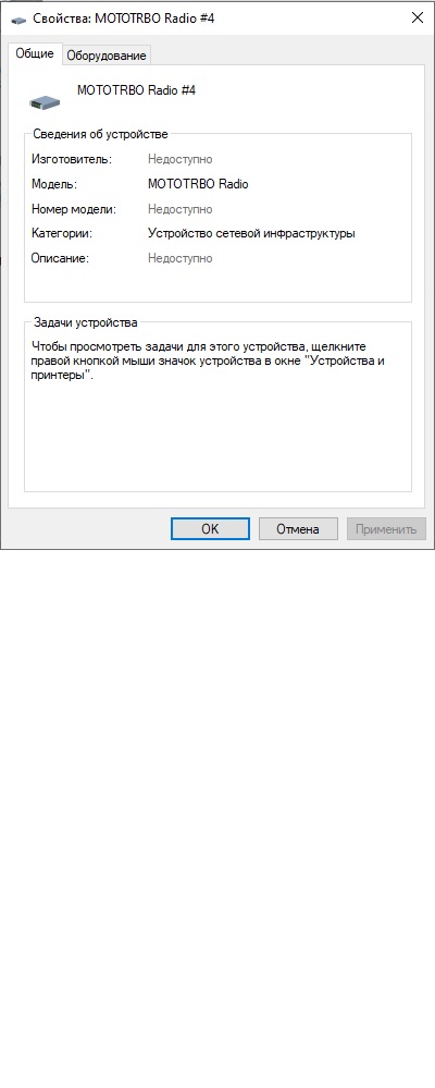 Имеется моторола DM3400. Решил прошить. Скачал программу CPS16 билд 828. Установил. Для радиостанции склепал провод из провода для мышки и контактов от какого-то разъема по типу вентиляторного для ПК (он идеально подходит). Провод прозвонил дабы убедится в наличии контакта, контакт есть (см. Фото_1) Вставил провода в задний разъем по типу №пина USB - №пина разъёма по схеме 1 - 3, 2 - 2, 3 - 1, 4 - 4 (см. Фото_2). Подключил радиостанцию к проводу, провод к компьютеру. Проигрался звук подключения. Открыл программу CPS16. Нажал кнопку Read. Через некоторое время появилась ошибка: Error#1687 Unable to detect applicable device(s). Check to see if a compatible programming cable is used (см. Фото_3). Начал поиск проблем. Открыл Диспетчер устройств. Радиостанция отображается корректно без ошибок (см. Фото_4-8). Перейдя по следующему адресу Меню Пуск - Параметры - Сеть и Интернет - Ethernet видим Неопознанная сеть (см. Фото_9). Продолжив путешествие по следующему адресу Меню Пуск - Параметры - Сеть и Интернет - Состояние - Настройка параметров адаптера видим следующее (см. Фото_10). Выполнив попытку включения (см Фото_11-13) ничего не изменяется, сетевое подключение остается выключенным. В интернете есть видео, где помогает якобы отключение интернета/вай-фая на устройтстве. Через Параметры адаптера я отключал штатные устройства сети интернет, и повторял операции представленные на Фото_11-13. Результат данных действий вы можете наблюдать на Фото_3. Радиостанция ГАРАНТИРОВАНО рабочая, поскольку я отвозил ее к одному человеку, и заводским кабелем через задний разъем она у него прочиталась и записалась. У него был ноутбук на ОС Windows 7, программа CPS16 билд 828. Я же в свою очередь опробовал: 2 домашних компьютера на Windows 10, 1 компьютер на работе на Windows 10, 1 ноутбук на Windows 10, 1 ноутбук на Windows 7. Характеристики конкретно моего компьютера представлены на Фото_14. Ни один из них не может прочитать данную радиостанцию. В связи с этим прошу помощи у данного сообщества в решении проблем с данной радиостанцией.