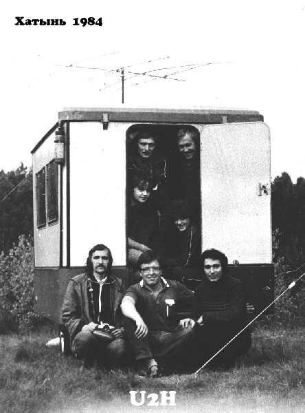 В рамках всесоюзной радиоэкспедиции "Победа-40" коллектив радио-клуба "Дальние страны" выезжал на мемориальный комплекс "Хатынь" На фото в прицепе "Купава": С. Мисилевич UC2AAХ-начальник р/ст. UK2AAB, C. Михновец ex. UC2AHQ, A. Зинкевич nw EU4E, О. Яровая UK2AAB. Вне прицепа. А. Косарев UK2AAB, Г. Жуковский nw EU1DX, А. Пилосян nw EU2F