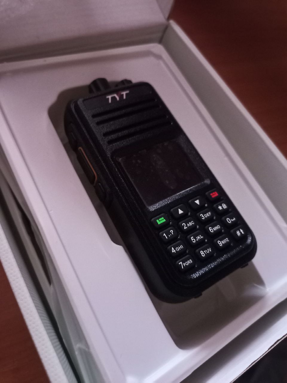 Неспешно продается TYT MD-UV380 (DMR/analog, 144/430), новый, с пленочкой. Комплект стандартный (зарядный стакан, клипса, антенна, радио), упаковка, пленка с экрана не снималась.