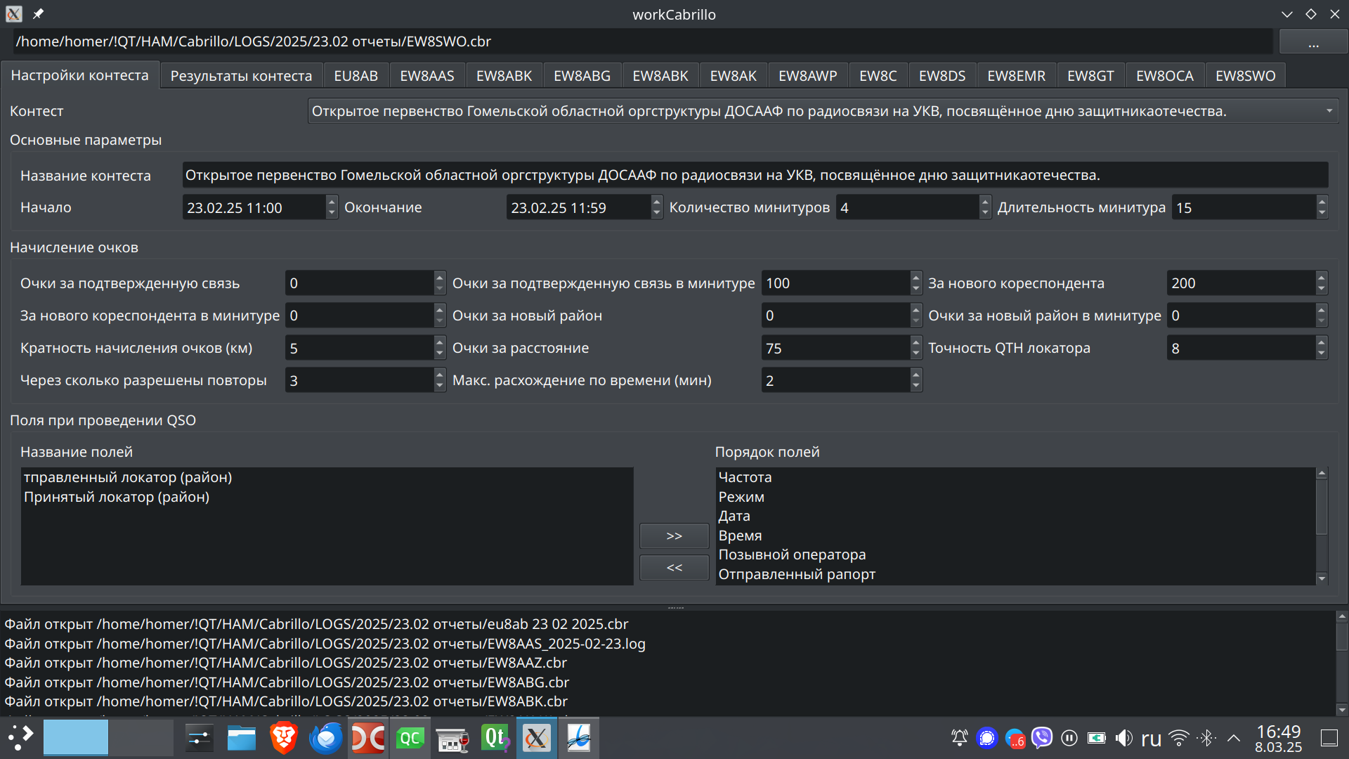 Вот наверное нужно было сразу к тебе обратиться, но решил тебя этим вопросом не грузить. Скинь конечно. Этот отчет я формировал на скорую руку и основная цель была на то, чтобы EW8AK мог обработать отчеты и затем вручную перепроверить программу, дабы выловить всех блох в алгоритме обсчета.