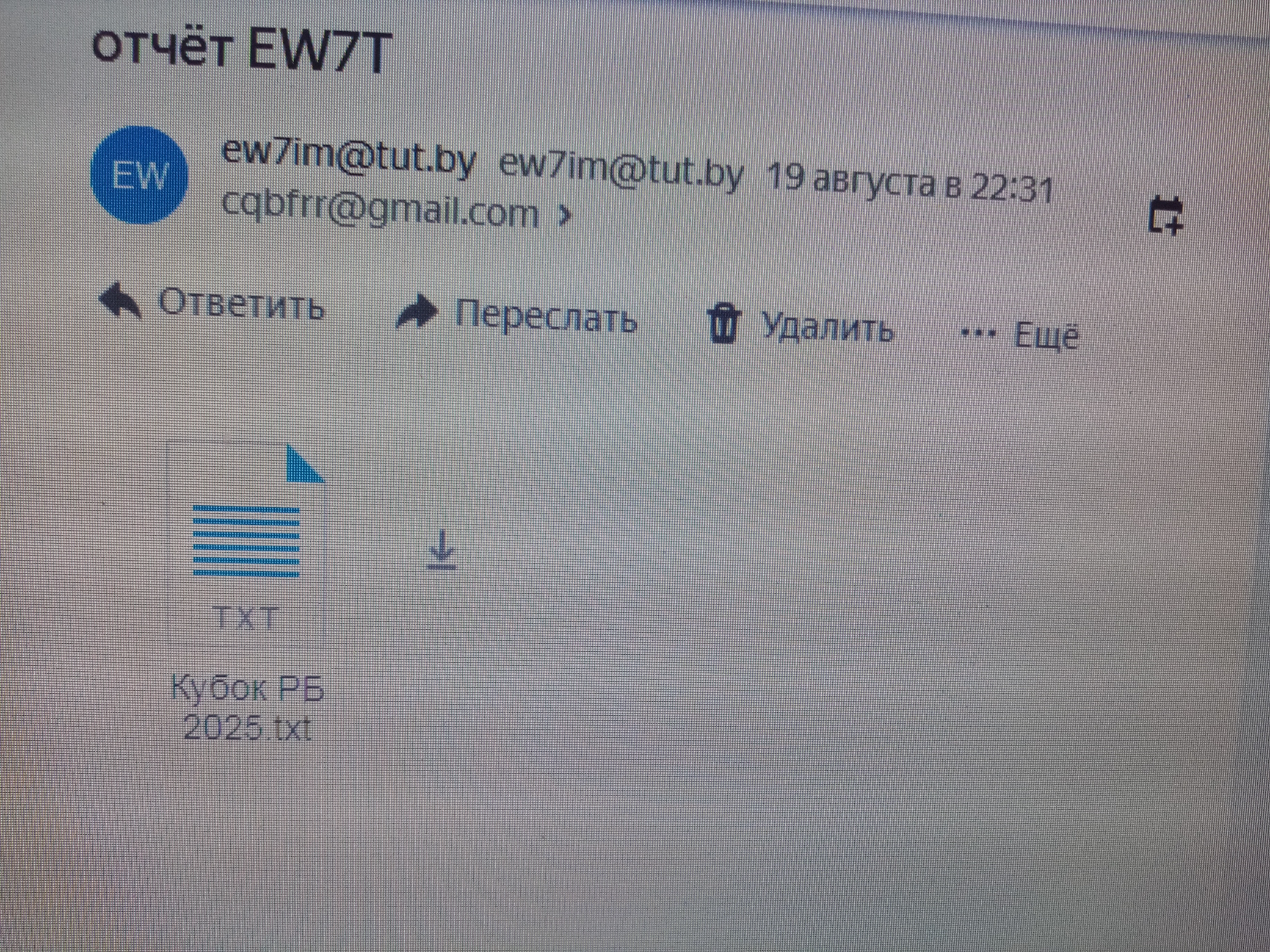 8.2 Каждый участник соревнования, независимо от количества проведенных радиосвязей, составляет отчет в типовой форме, и в течение 3-х дней (согласно дате сообщения электронной почты) после окончания соревнований высылает отчет в адрес главной судейской коллегии по электронному адресу:
