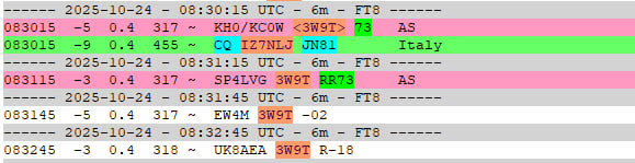 6O3T я видел 26.10 около 11:30 UT, но только один декод.