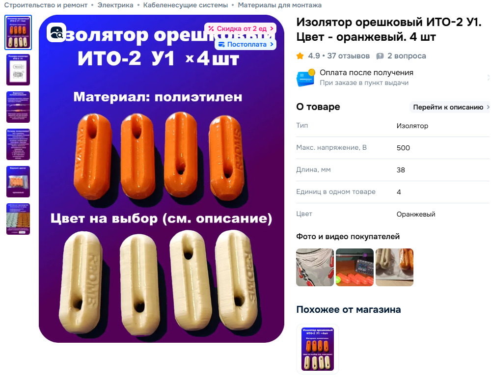Меня еще вот что интересует, а чем собственно можно было бы оттягивать антенну? Мачту понятно, стальные тросы, а вот само полотно антенны... Видется мне два варианта. Первый который я использую сейчас - полипропиленовый шпагат. Пережил летнюю жару и зиму без последствий, но как долго он проживет - загадка. А второй вариант, я нашел на озоне вот такие изоляторы и уже через них стальной трос тянуть, но опять же, вопрос в надежности такого. Думал керамику брать, а за нее баснословные 80 рублей просят.