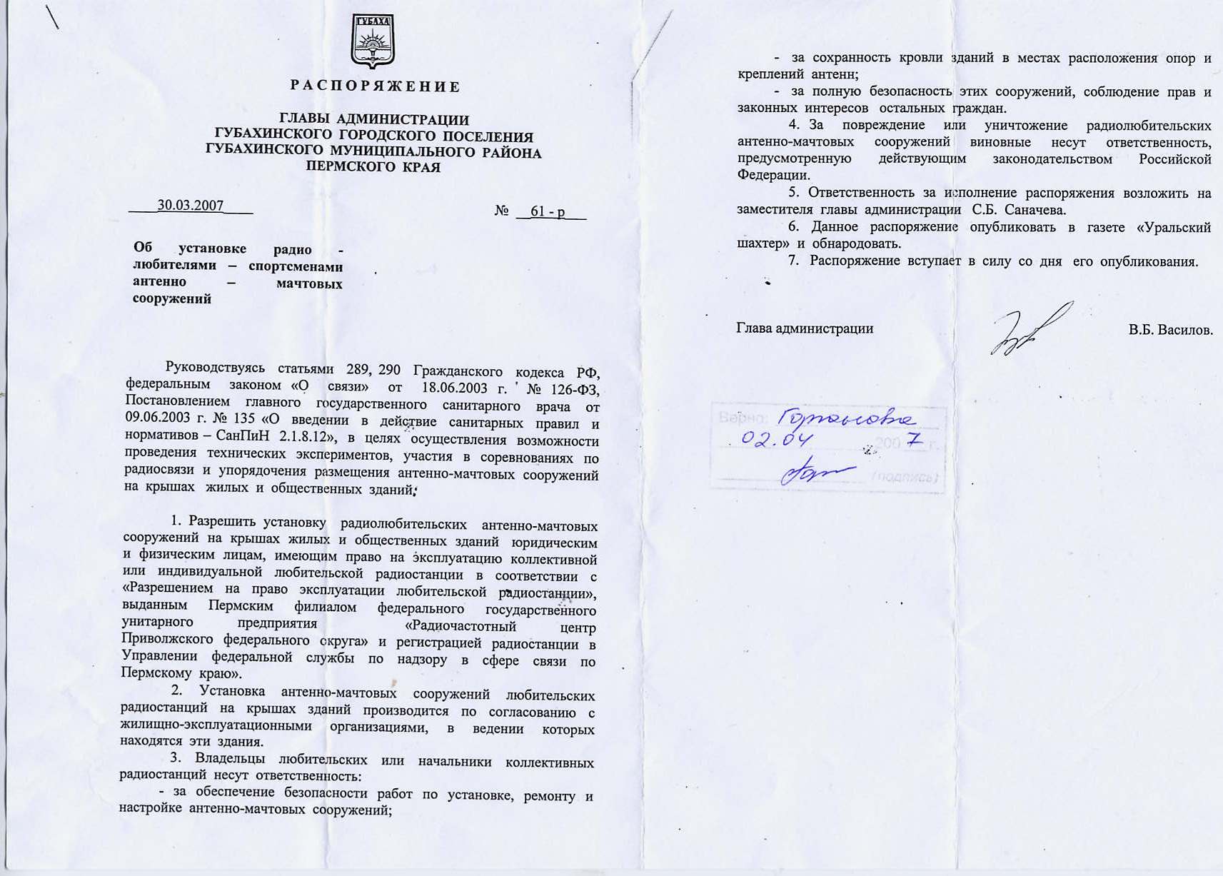 Была у нас мысль попробовать, хотя бы на уровне города, пробить разрешение на установку антенн для местных радиолюбителей. Тем более, что мэр города когда-то занимался в радиокружке у EW4CT, однако известное Постановление правительства №384 на всех наших благих пожеланиях поставило большой крест.