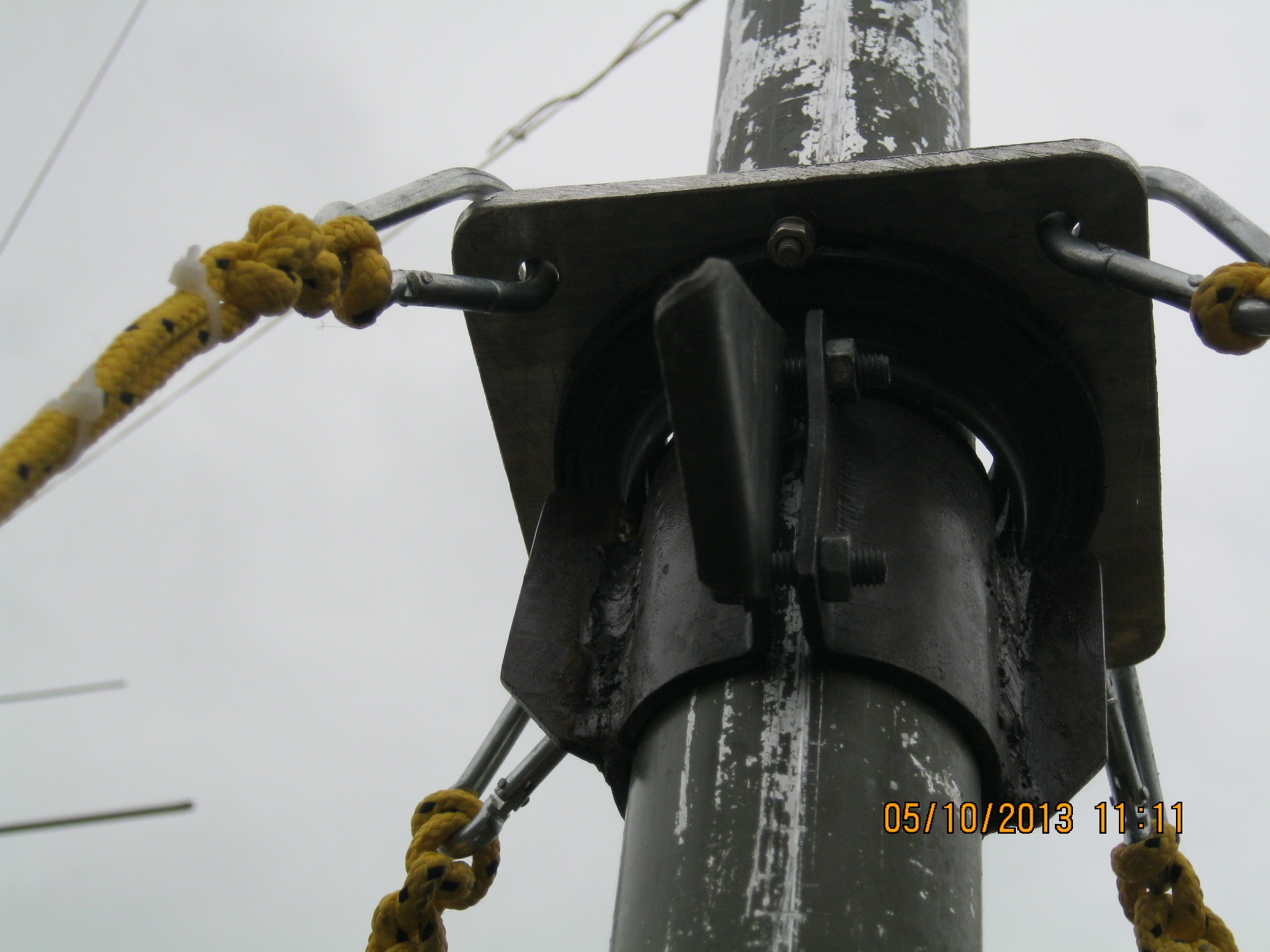 Мачта вращается? Если да,то подскажите пожалуйста устройство крепления растяжек к мачте.