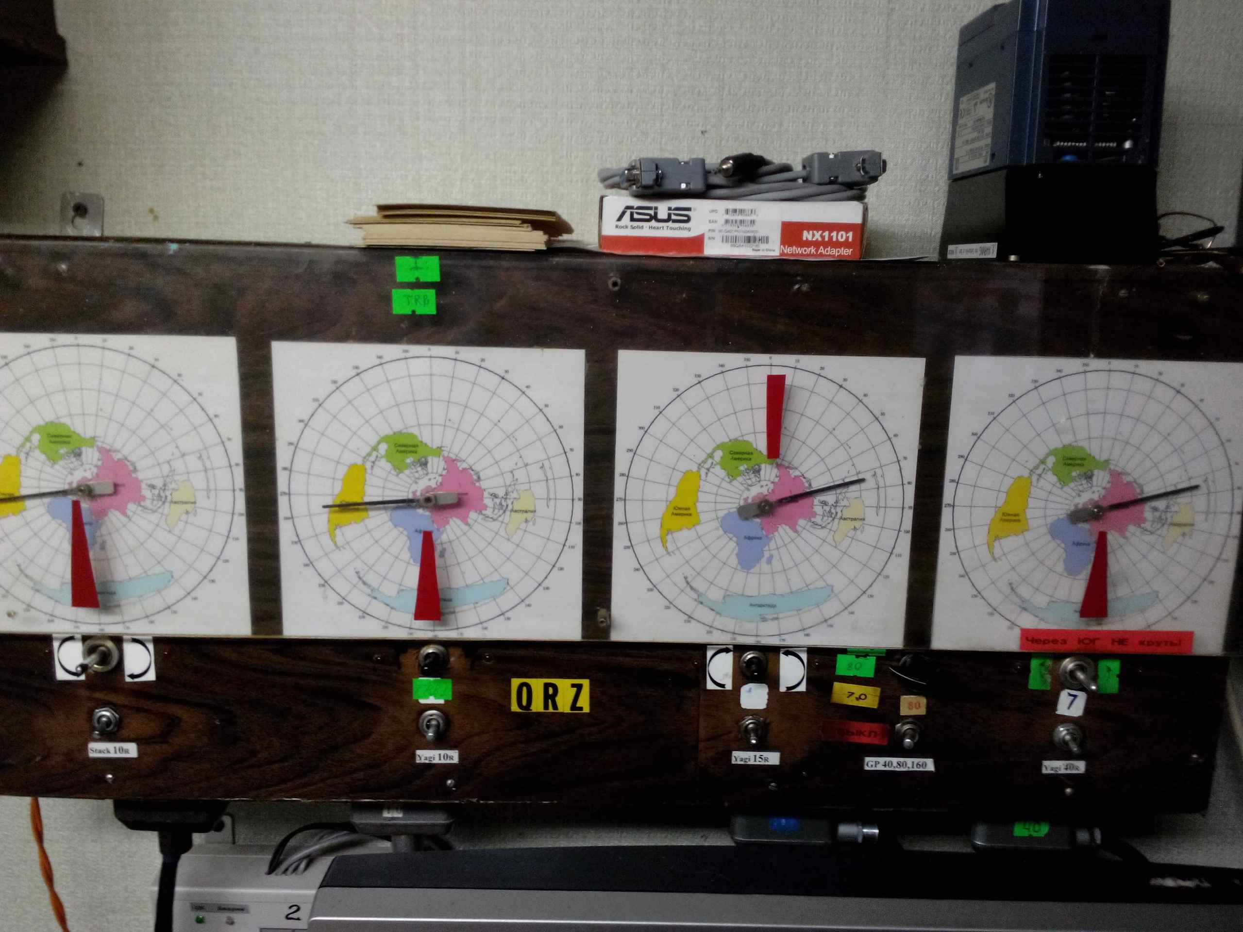 Антенны: стэк 4х5el Yagi на 10, 6el на 15, 7el на 20, 5el на 40, Yagi 8-4-4 2 шт., Quad 6+4+4+2, 16,5м DL2KQ, слопперы. Всё сделано своими руками.