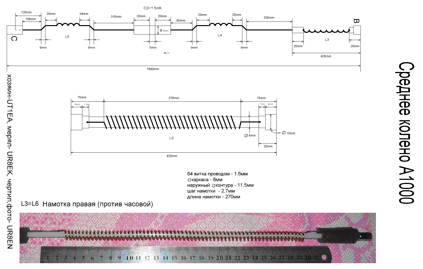 На картинке во вложении L1,L3,L4-по часовой(левая),L2-против часовой(правая).Антенна до сих пор не готова(не готовы детали "стакана" и крепежа к мачте).Полотно у меня из меди 2-2,2мм;мотал всё по часовй(ОЙ! :roll: ,вроде бы :? ).