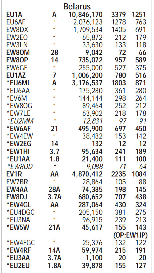 В SSB очень хороший результат у EU1A, поздравления Александру EW8DJ с высоким 4-м местом в мире!