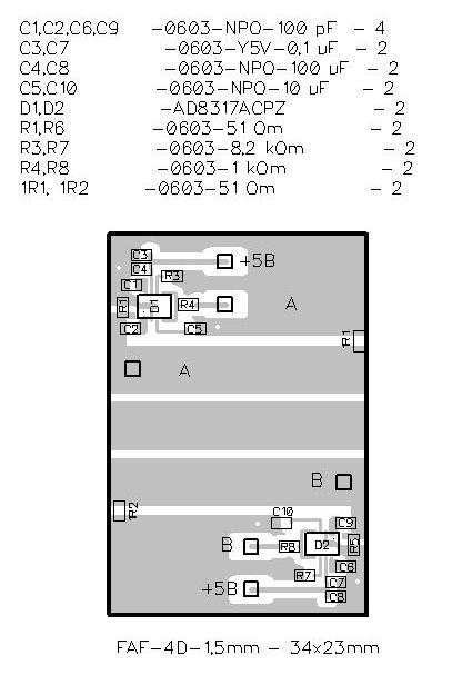Это сделано только для канала А, для канала В наклон оставлен прежний, под AD8307. ВНИМАНИЕ! До начала монтажа от большой платы ножовкой по металлу отпилить узкую полоску.