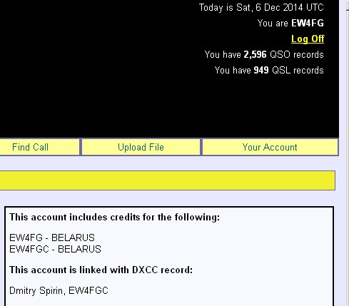 Через Modify Account (кнопочка слева) надо сделать EW4FG основным и на него и будет выдаваться диплом.EW4FG писал(а):Интересно, при новой заявке, на какой позывной будет выписан диплом ...