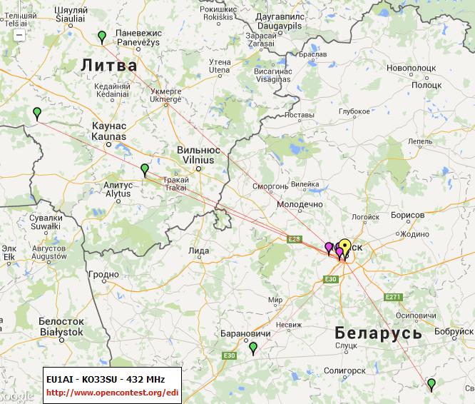 Карты связей за июньский тур на 432 от Георгия EU1AI и Анатолия EU3BD.