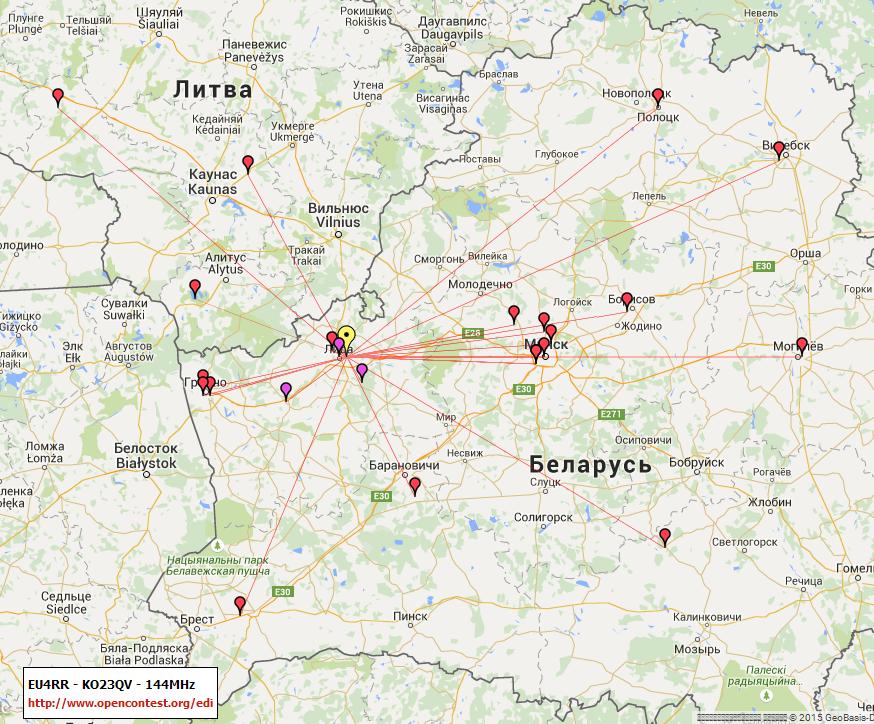 Карта связей от Вадима EW6EM в дне активности на 144.