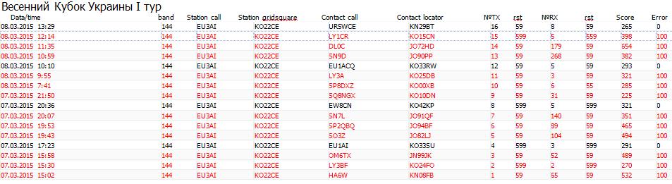 Заявленные результаты "Полевой день Украины УКВ - 2015"