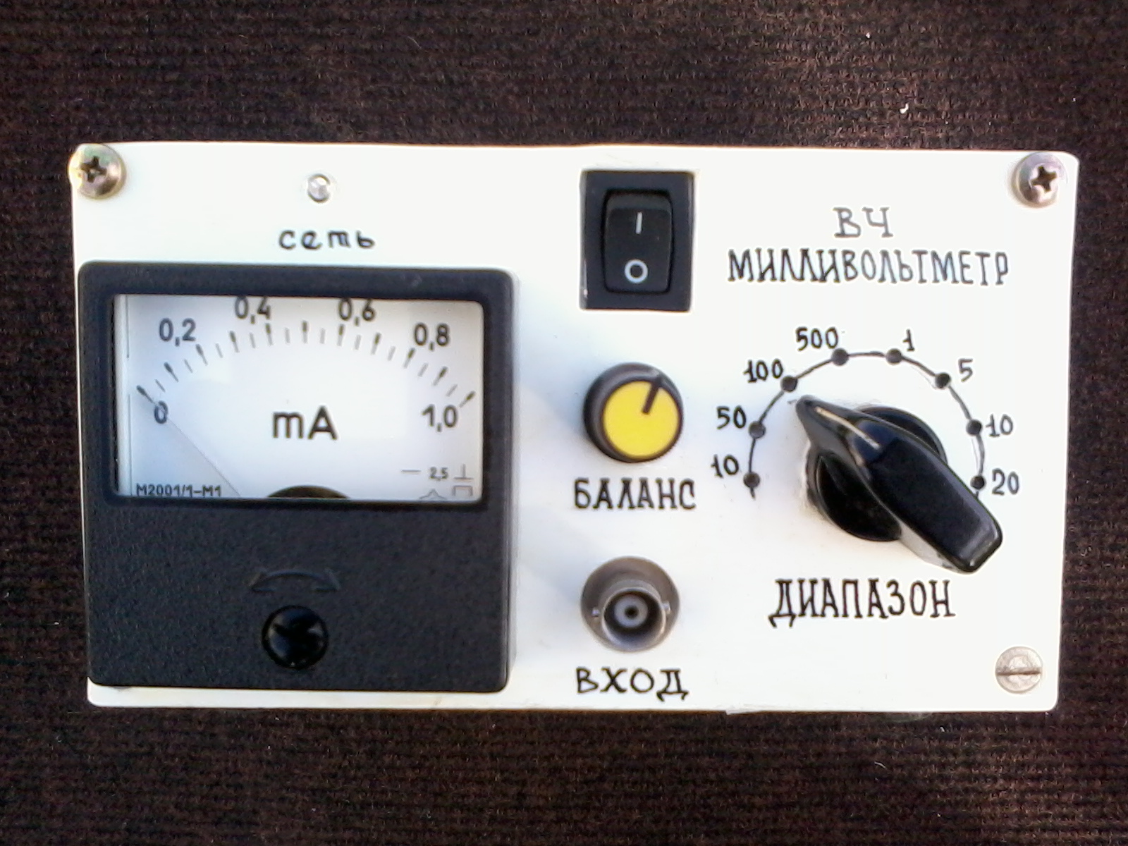 В прошлом году во время настройки своего Альбатроса необходимо было измерять ВЧ напряжения в разных точках. И хотя у меня есть осциллограф С1-65, надоело все время переводить амплитудные значения в эффективные. Решил построить ВЧ вольтметр по схеме из журнала Радио №2 за 2011 год / автор Роберт Акопов /. Отмечу сразу что схема на 90 процентов с хвостиком повторяет схему ВЧ милливольтметра, опубликованную в том же журнале Радио №7 за 1992 год / автор А. Пугач / за исключением номиналов нескольких резисторов, количества диапазонов и типа применяемых диодов. В качестве корпуса использован корпус от блока питания компьютера. В том месте где стоял кулер стенка почти полностью удалена и на ее место прикручена дюралевая пластина а уже сверху закрыта белым пластиком. Там где стояла печатная плата БП также на четыре винта прикручена дюралевая пластина и уже на нее установлены все элементы вч милливольтметра. В качестве корпуса для измерительного щупа автор применил пластиковый пенал от губной помады. Я пошел другим путем. У меня используется отрезок латунной трубки "одетый" в термоусаживаемую трубку. В качестве передней и задней части щупа применил переднюю и заднюю часть автомобильного пробника / на третьем фото внизу /. Настроил все диапазоны кроме 10 мВ, так как пока не имею возможности померить такое напряжение. С уважением Григорий R4UAC.