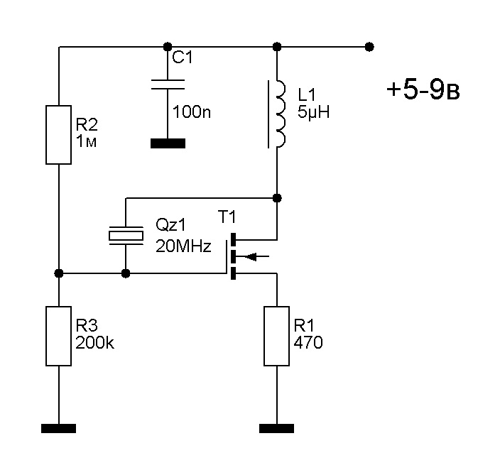 Не ругайте меня очень сильно. не могу найти схемку кварцевого ВЧ генератора на mosfet. Что то типа этого