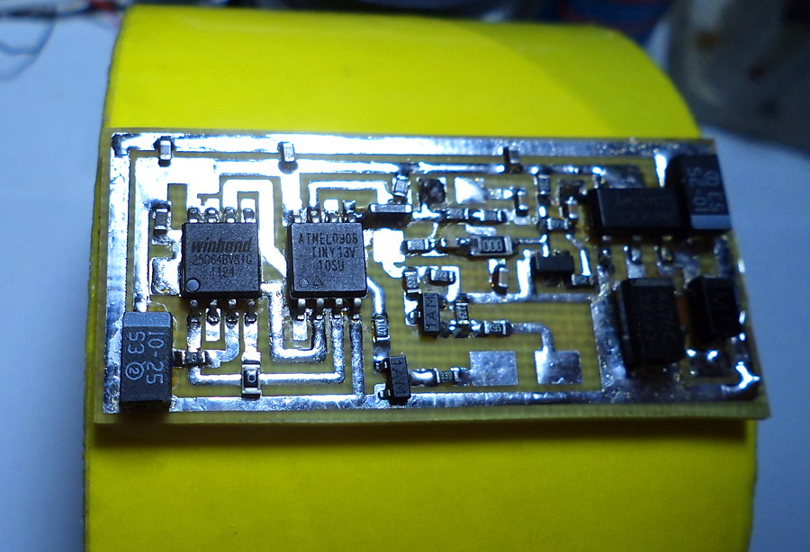 Тогда были куплены 5 микросхем Attiny13. Феном запаивал, и пробовал все, микросхемы памяти пробовал тоже разные, и даже назад запаял "тормознутую"(низкая рабочая частота) E25T80. Результат один. Тогда мне не удалось повторно запустить вторую схему репитера. Всё забросил, что-бы молотком не "поушибать" всё стоящее рядом от злости :ps_ih:.