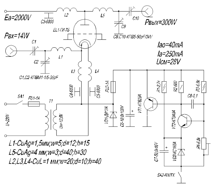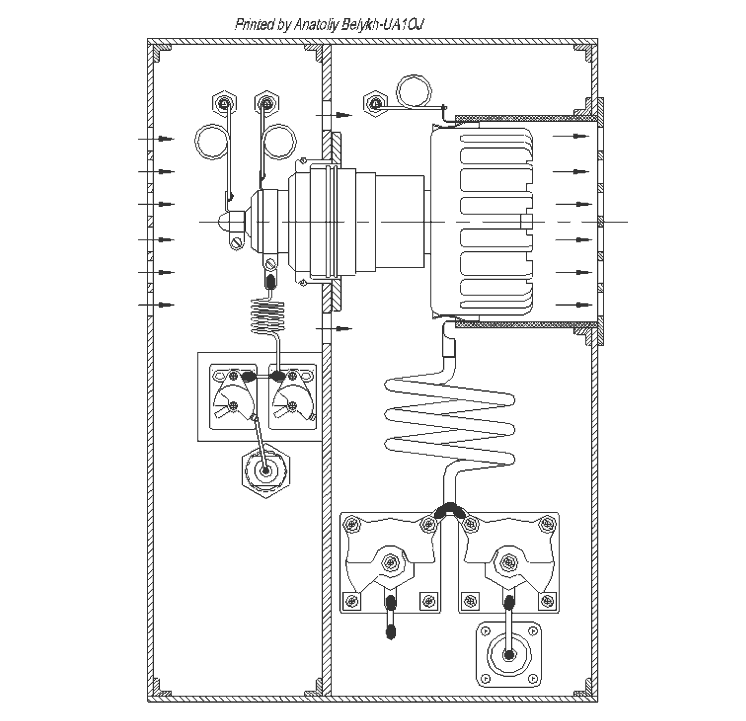 Схема и чертеж усилителя взяты с cqham http://www.cqham.ru/pa_ua1oj.htm