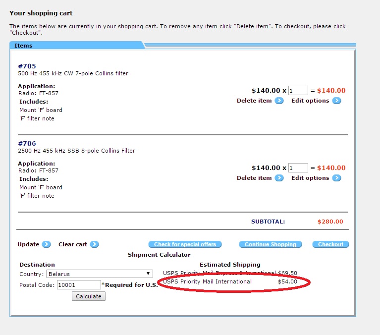 Калькулятор стоимости посылки из РБ в другие страны (без НДС)