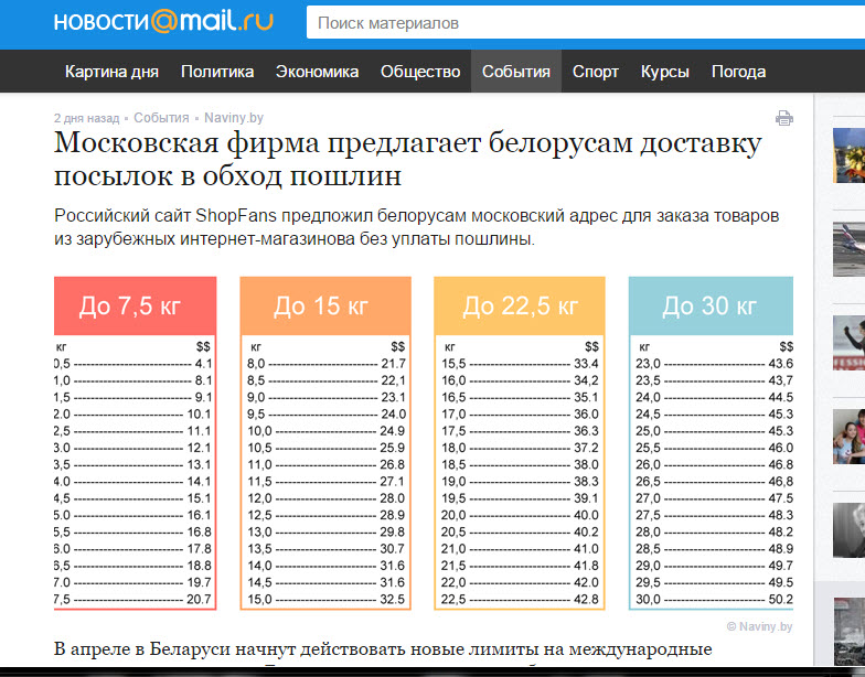 Re: Беспошлинный ввоз посылок в Беларуси ограничен 22 евро и