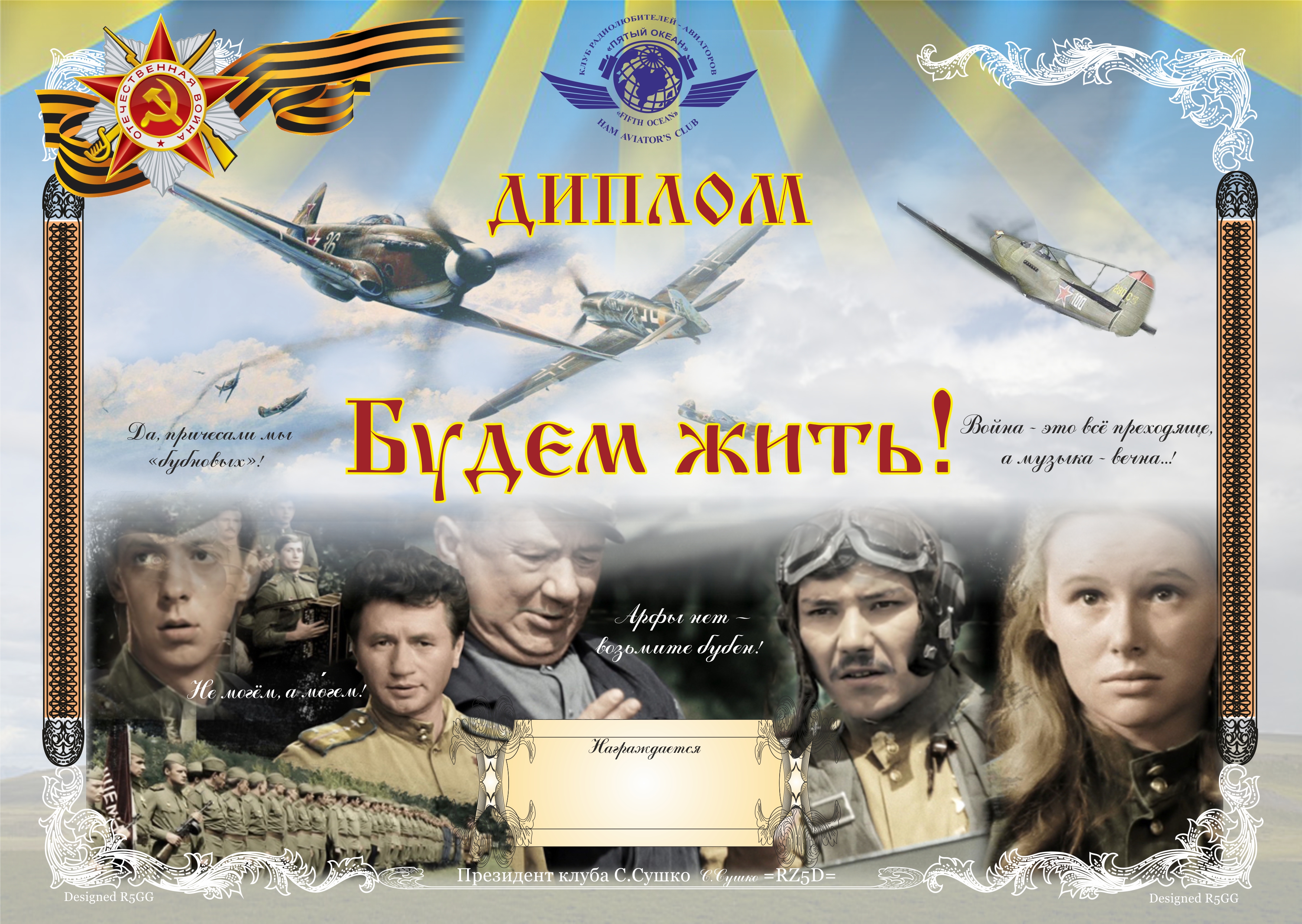 За работу со станциями клуба "Пятый Океан" в мемориале Победа-71 будет выдаваться диплом "Будем жить!" и 100 лет Маресьеву!