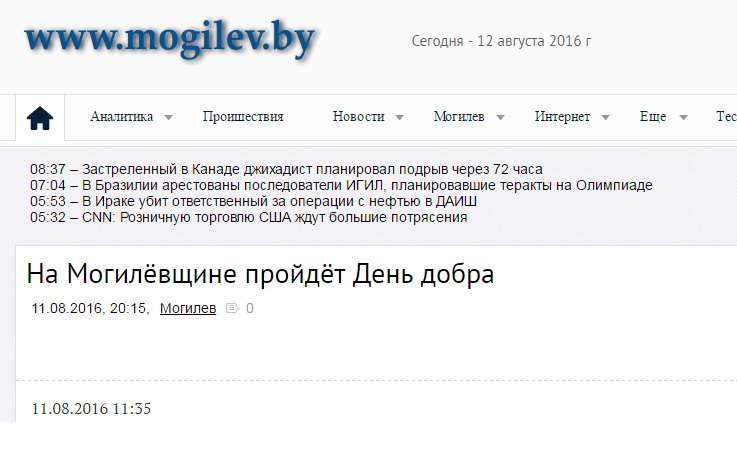 Захожу по ссылке и вижу такую картинку... Заголовок статьи, а выше - события дня... От них так и веет добром!