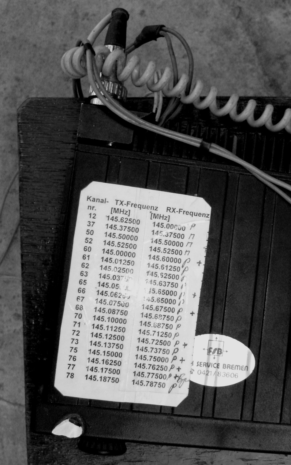 Список рабочих частот на фото.