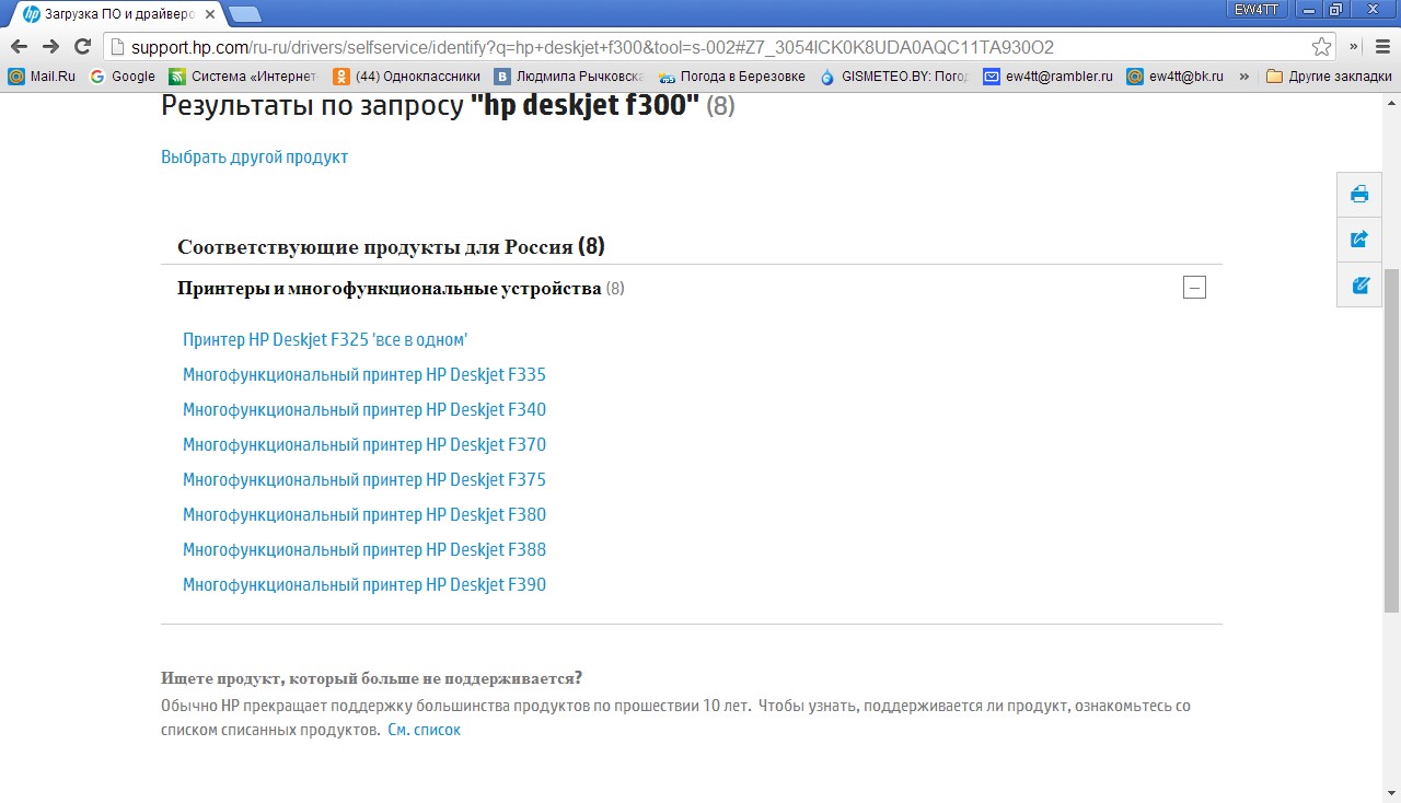А чего-то качать ? Данной модели давно нет в списке. Читайте нижнюю строчку...