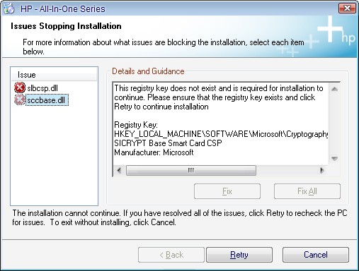 Леонид, судя по скрину у Вас на компе отсуствует служба криптогафии, кто то вырезал. Устанавливайте драйвера вручную, через inf. А че HP собралось шифровать/расшифровывать на Вашем компе сие мне не ведомо. Я б их послал... сами знаете куда.