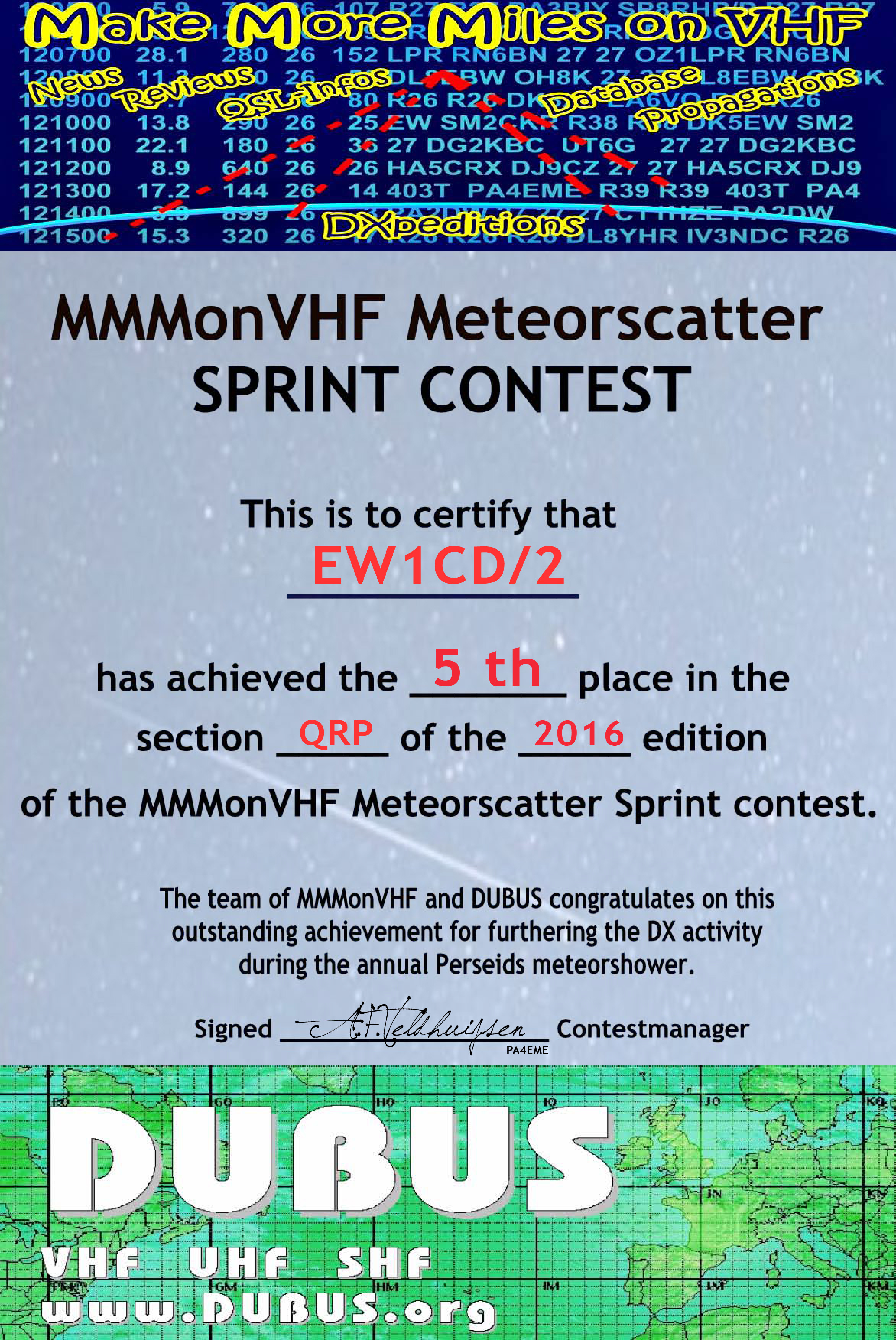 Re: 144 MHz Meteorscatter Sprint Contest 2016