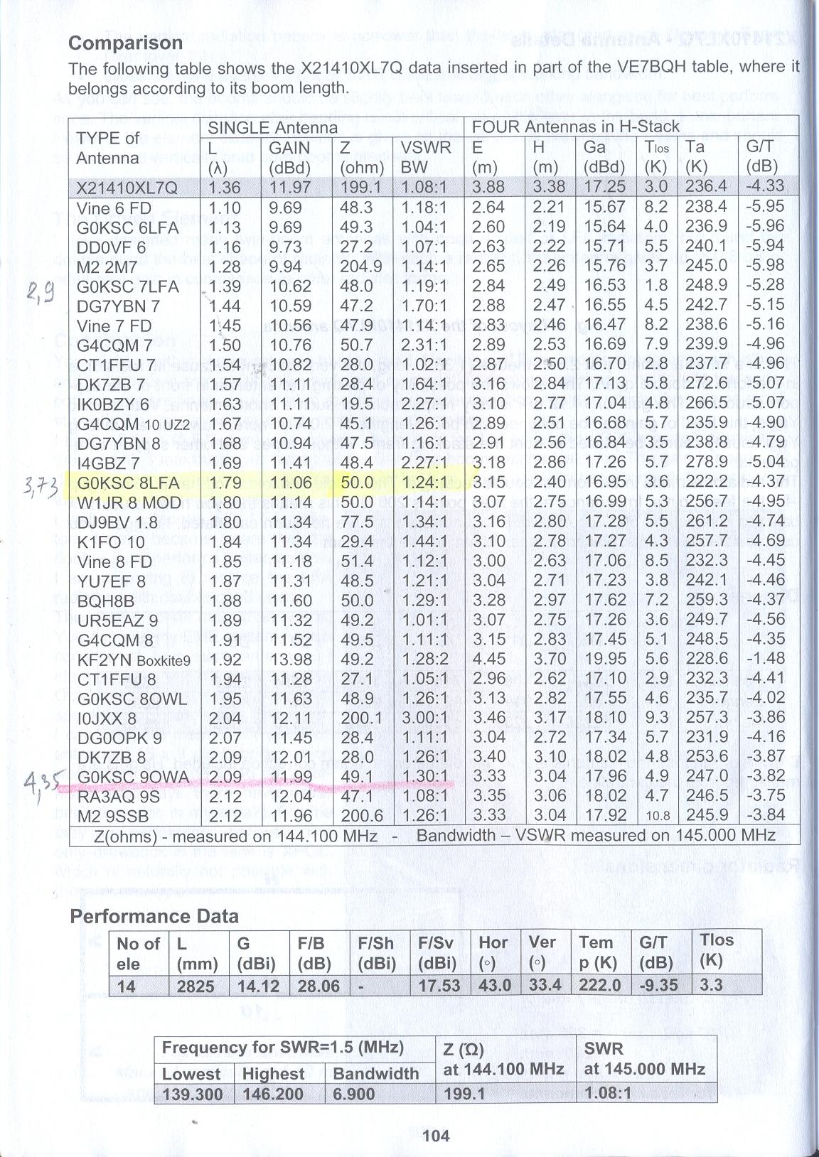 Автор антенны — Slobodan Bukvic, YU7XL, привел параметры этой антенны X21410XL7Q в сравнении с другими в таблице: