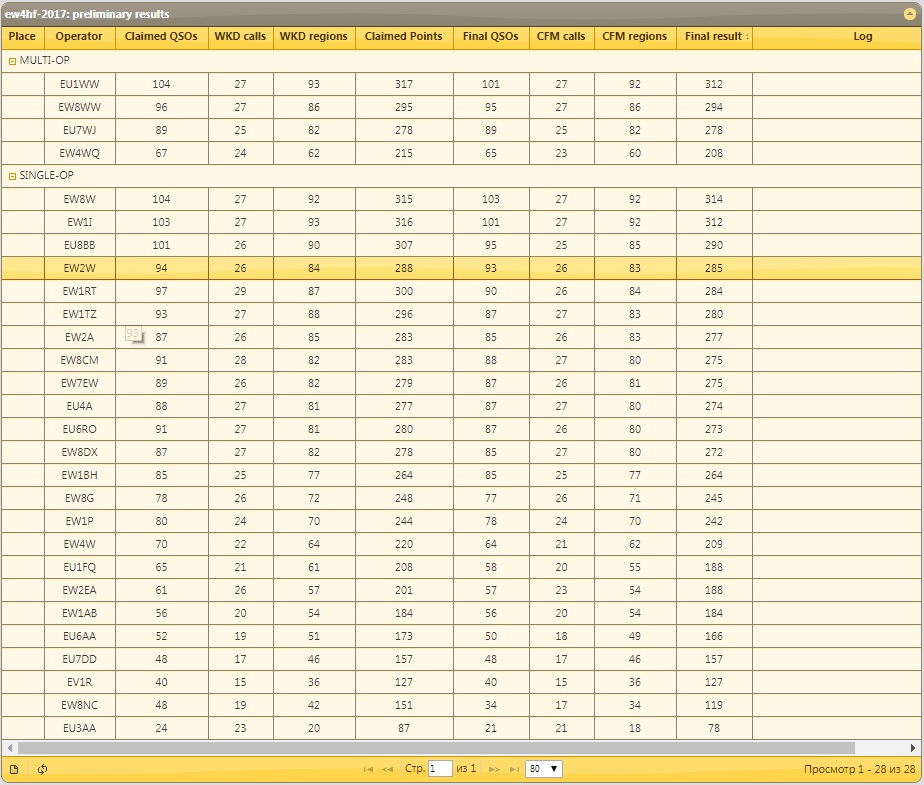Пришли отчеты: EU1WW, EW1AB, EW1BH, EW1RT, EW2A, EW2EA, EU3AA, EU4A, EW4W, EU7DD, EU7WJ, EU8BB, EW8W, EW8WW.