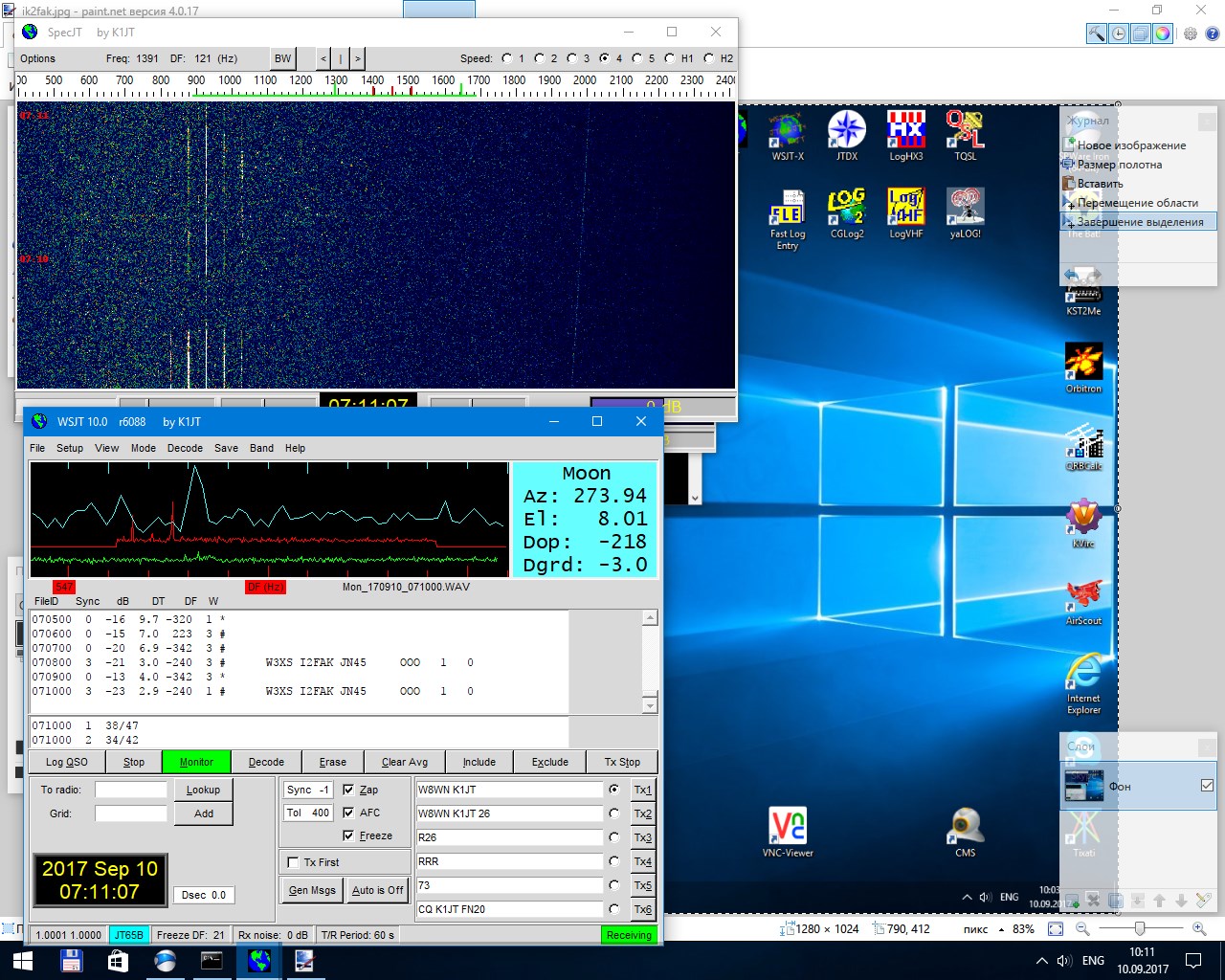 Пробовал звать I2FAK , но он не услышал...Возможно мало моей мощности, возможно не лучшие условия для Луны или просто потому, что я не регистрировался в чате и звал его рандом...