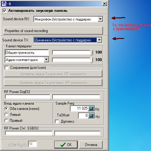 Выставил все параметры на ПК и в трансивере.