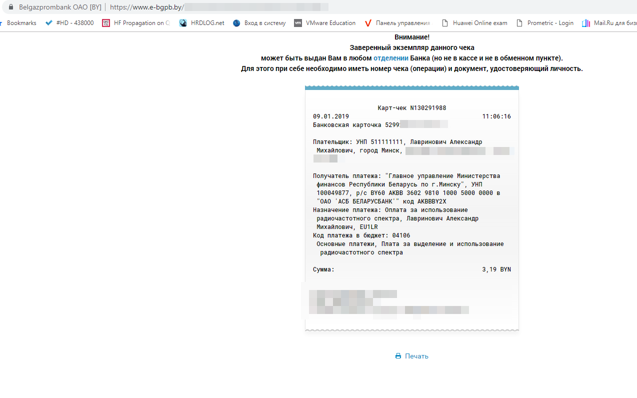 Заплатил 5-го числа в Беларусбанке. Пенсионеры пока не налетели, поэтому заняло 20 минут - меньше, чем здесь на форуме читать. Да и прогуляться по свежему воздуху полезно. Выслал по указанному EW2DZ адресу, через пару дней перезвонил Плякину для подтверждения. В прошлом году не перезванивал, в ГИЭ моё электронное письмо потерялось (или не обратили внимания), а в марте приходит грозное официальное письмо о лишении всего. Повторно выслал скан оплаты, сказали что всё хорошо, но чтоб так больше не делал! Чего не делал я не понял - ведь не я же потерял свое письмо.