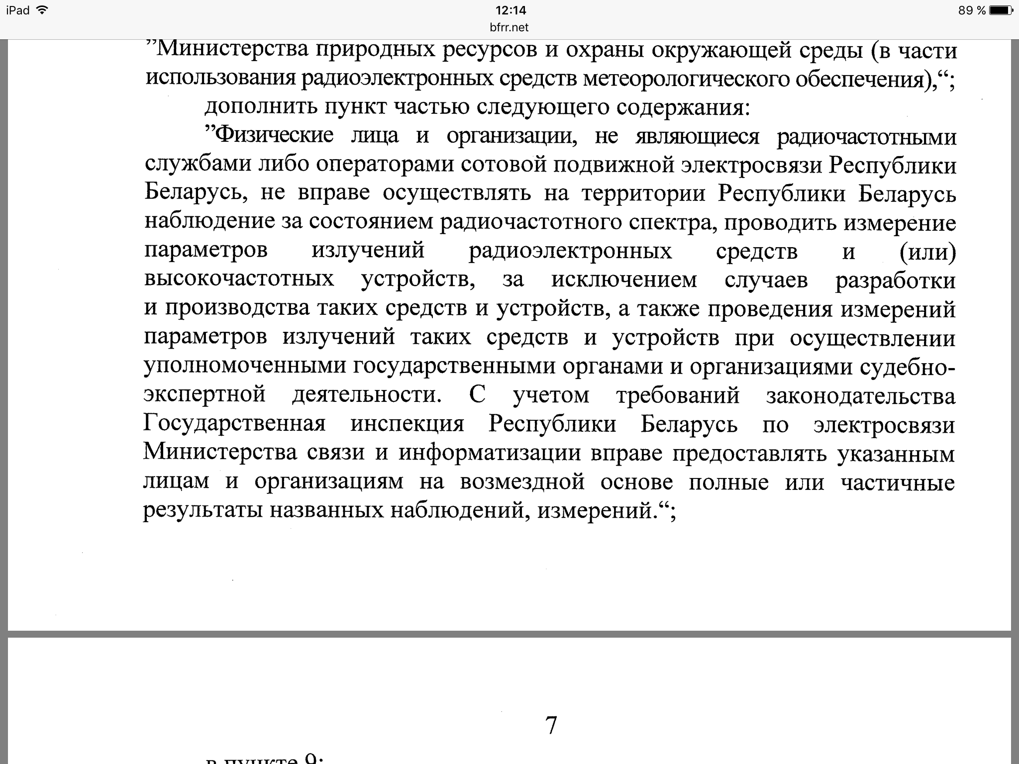 Дмитрий, а что, радиолюбители у нас стоят над законом ? Что-то я не увидел в документе никаких исключений для них (нас). Документ касается всех в Республике Беларусь. Поправьте меня аргументированно, со ссылкой на первоисточники, если я ошибаюсь ... :-):