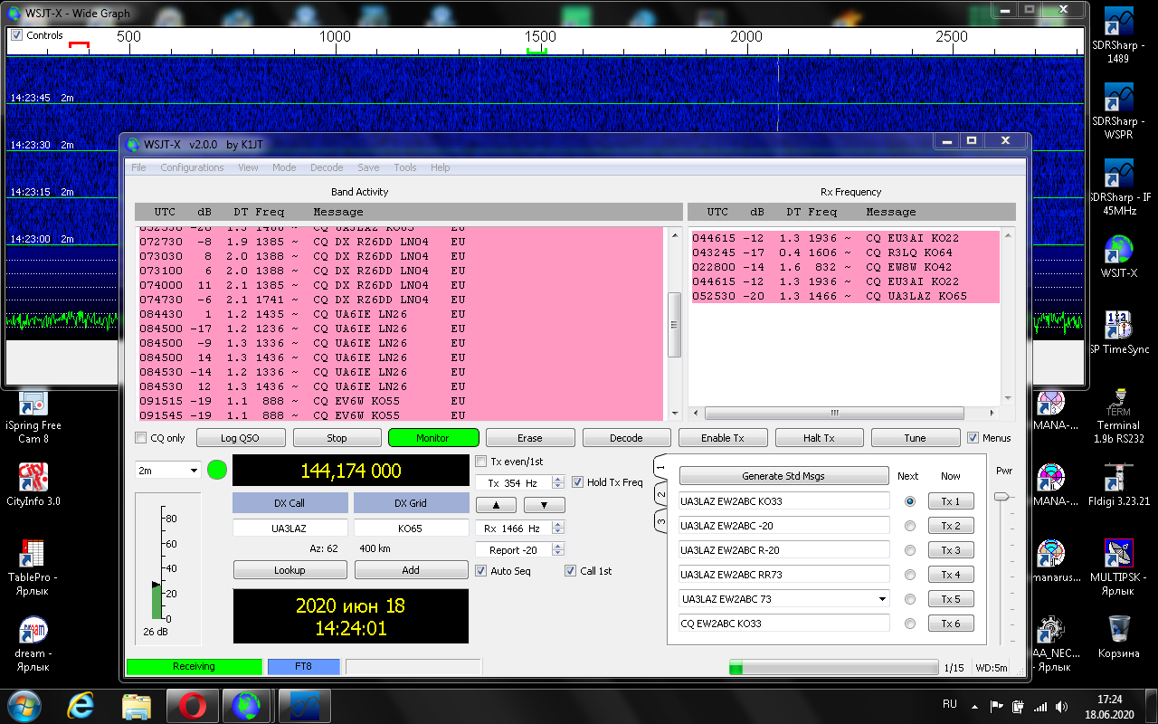 2020-06-16 08:18:29 17min RX6DN -7db FT8 2m 144.1757 MHz Russia-EU UA KN94NP