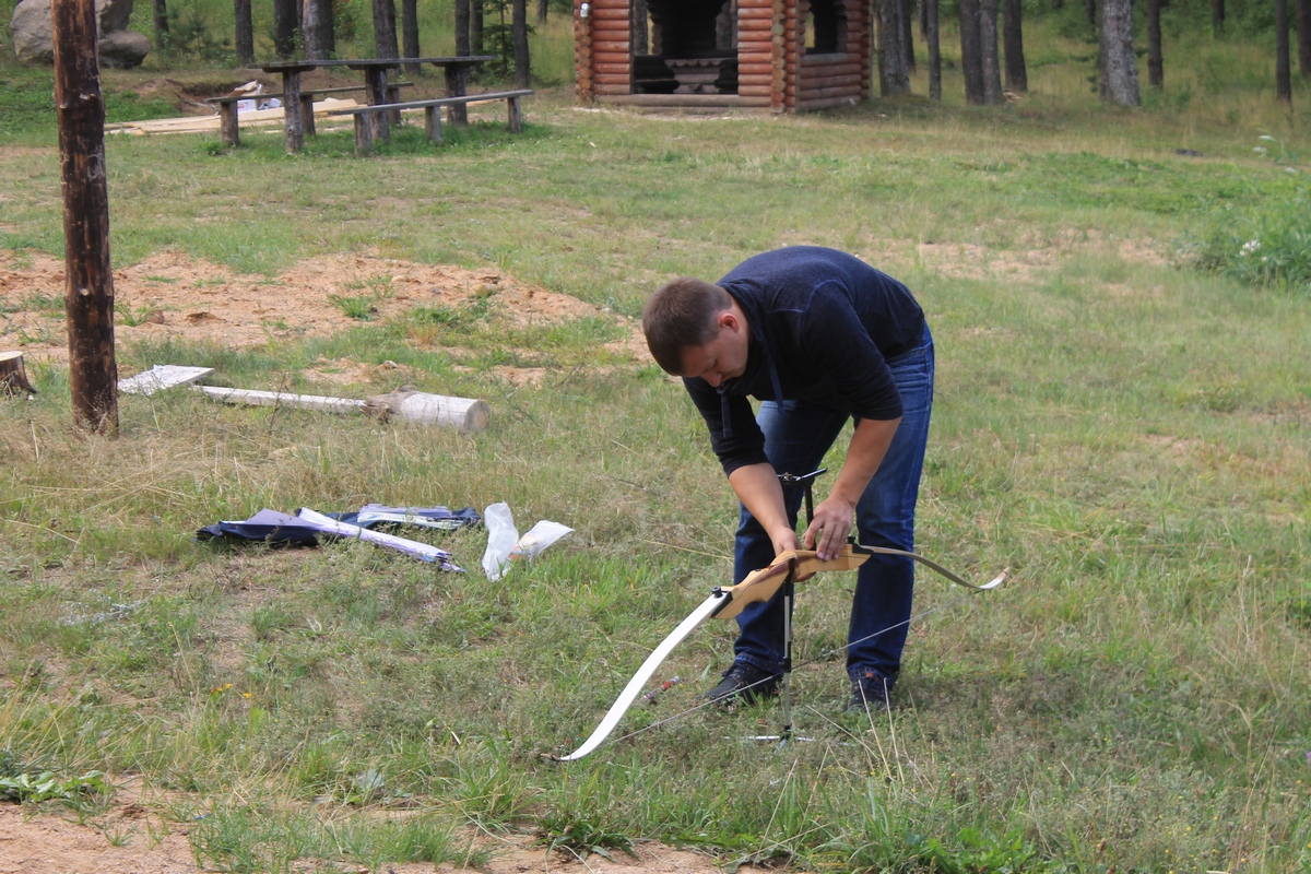 Сегодня был завезен щит для мишени (соревнование по стрельбе из лука),настроен лук,проведена пробная стрельба.
