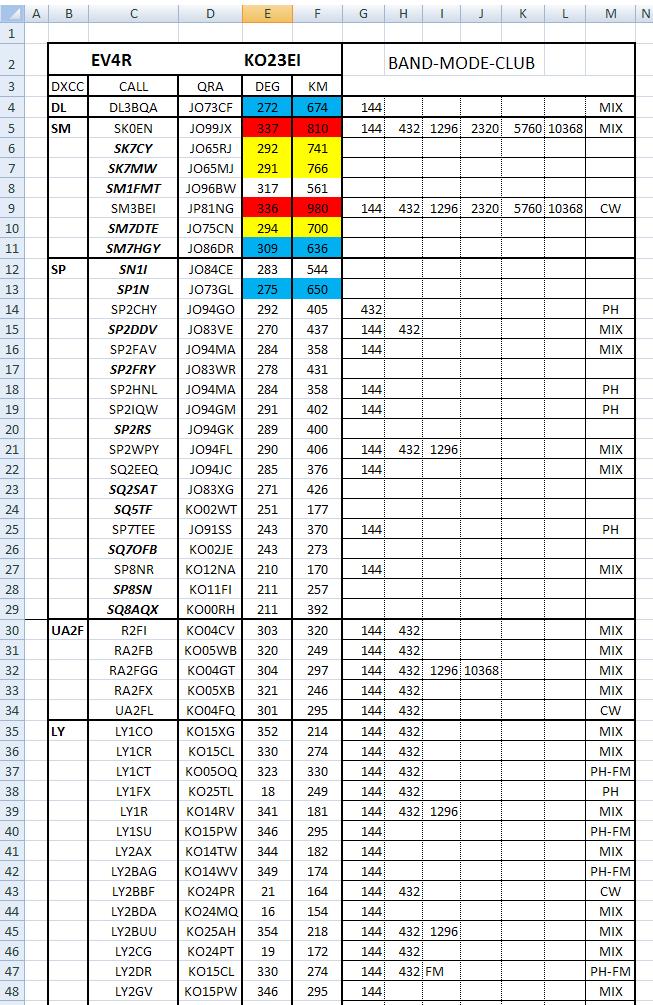 На 144- 37 связей: EW- 15 (EU4-8), LY- 15, YL- 3, ES- 1, SP-1, UA2F- 2 qso.