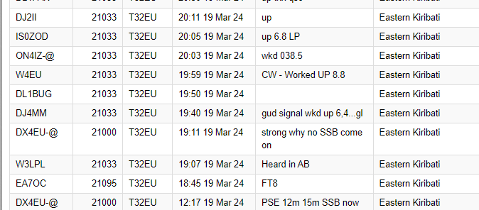 С ростом солнечной активности с осени 2022г началась активизация редких и наиболее удаленных от нас островов, в частности в Тихом океане (в 31 и 32 зонах) различными экспедициями.