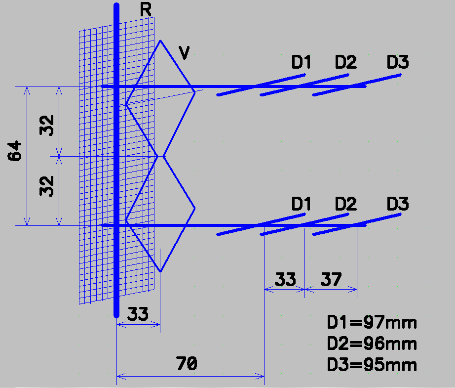 Поступил вопрос: "Как сделать такую же антенну, но в два раза меньше, только четыре вибратора?"