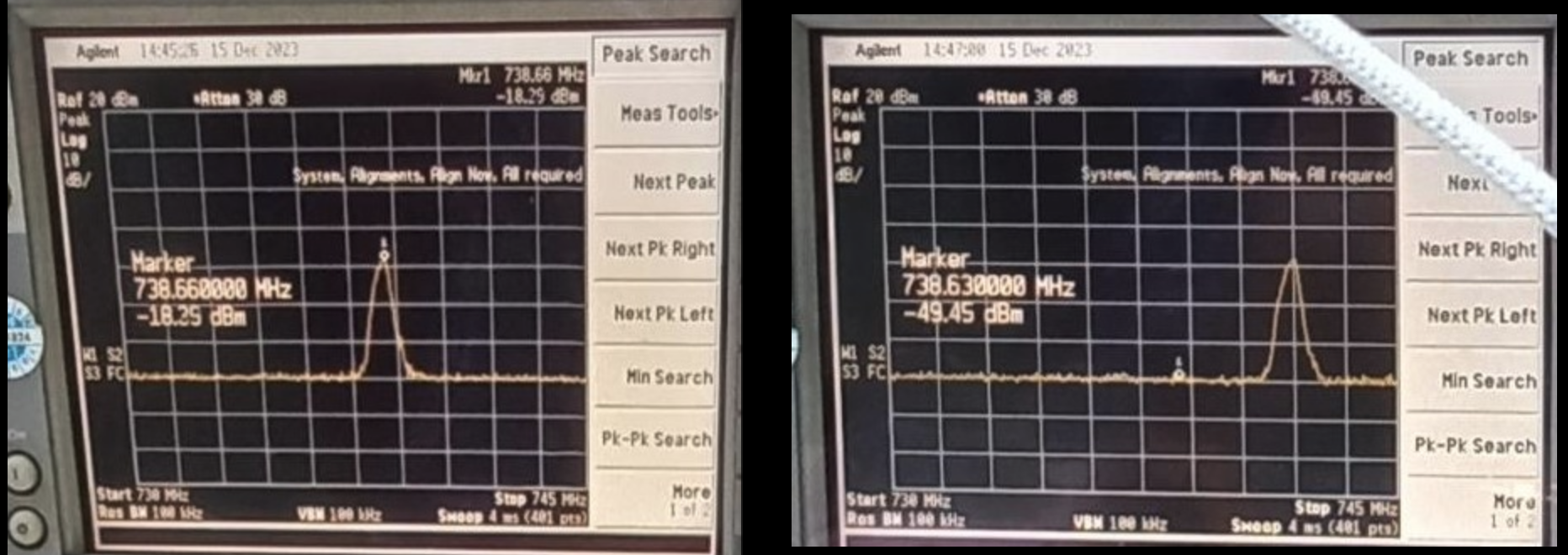 Выход LNB подключен к анализатору спектра, либо приемнику на частоте 739±10МГц.
