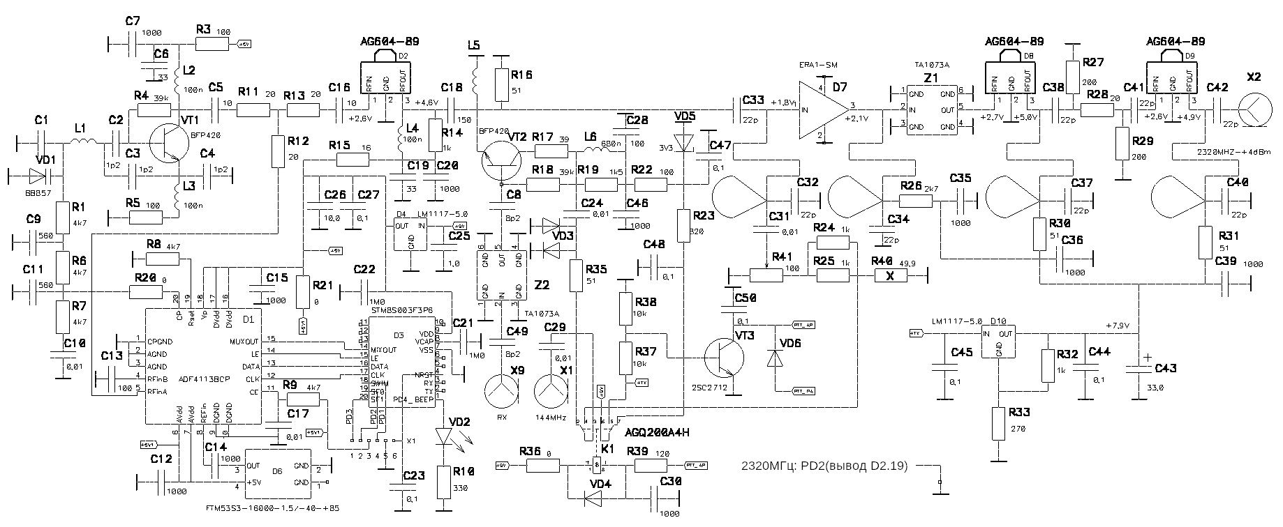 eu1aq писал(а):Поскольку оставшиеся от рабочего проекта ТА1073 благополучно затерялись в глубинах закромов, пришлось поставить SF2124E, благо, что трансвертер планируется исключительно под QO-100... Однако, они тоже потребовали развязки по входу/выходу. По входу уютно уместилась ёмкость 0603, а вот по выходу пришлось поставить 0402...