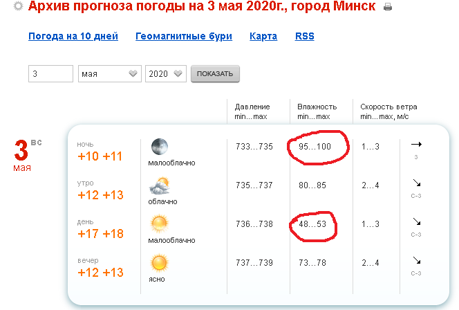 Архив погоды https://meteo.by/minsk/retro/2020-5-3/
